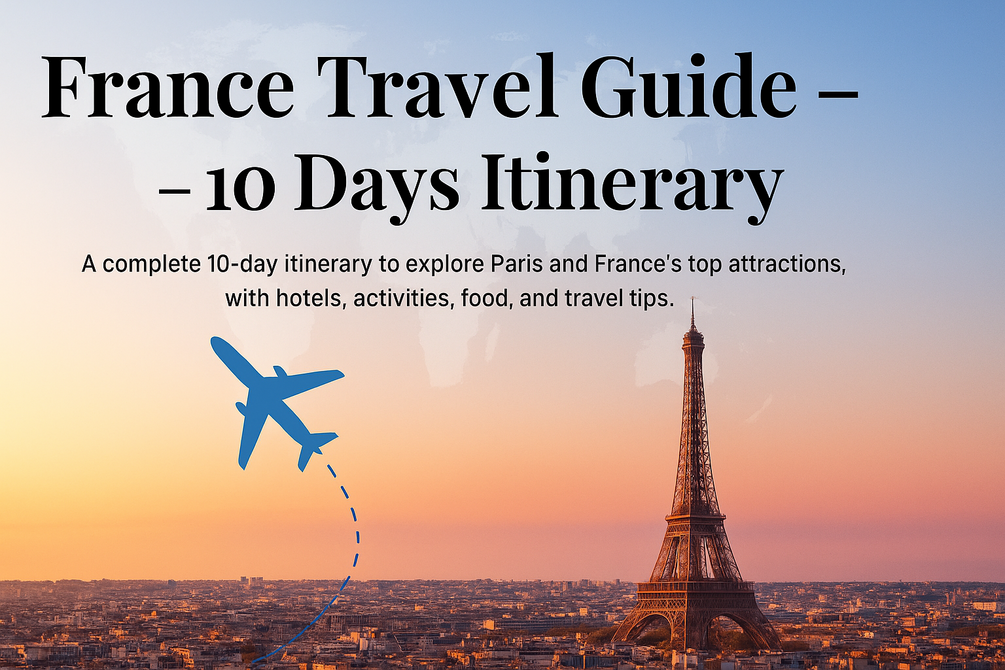 This travel guide offers everything you need for an unforgettable trip to France. From airport arrival tips and budget-friendly hotels to daily itineraries for 10 days, it covers must-see attractions, local cuisine, cultural experiences, and practical advice. With this guide, you’ll save time, stay organized, and enjoy France like a true traveler.