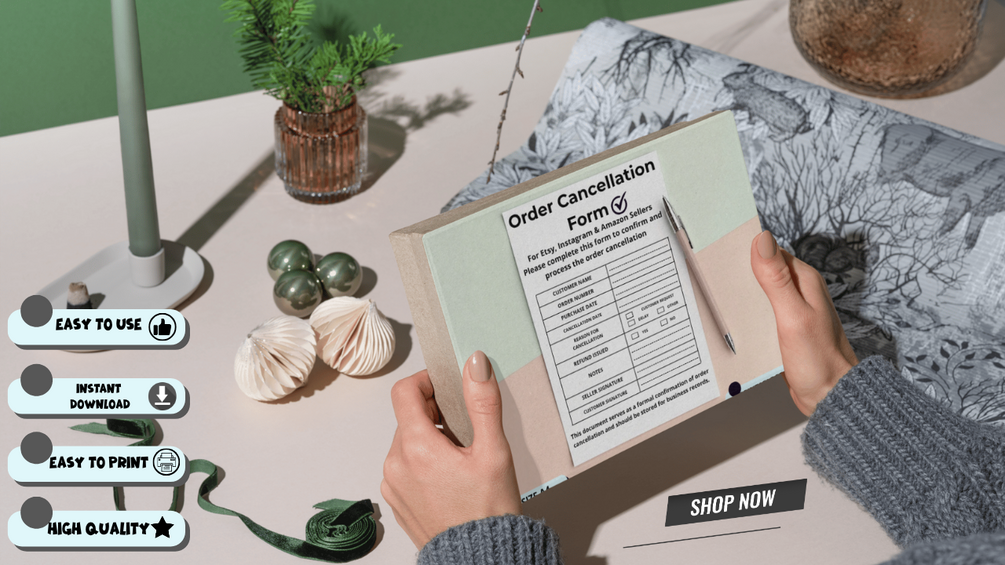This printable Order Cancellation Form (A4 PDF) is designed for Etsy, Instagram, and Amazon sellers who want to handle cancellations like true professionals.